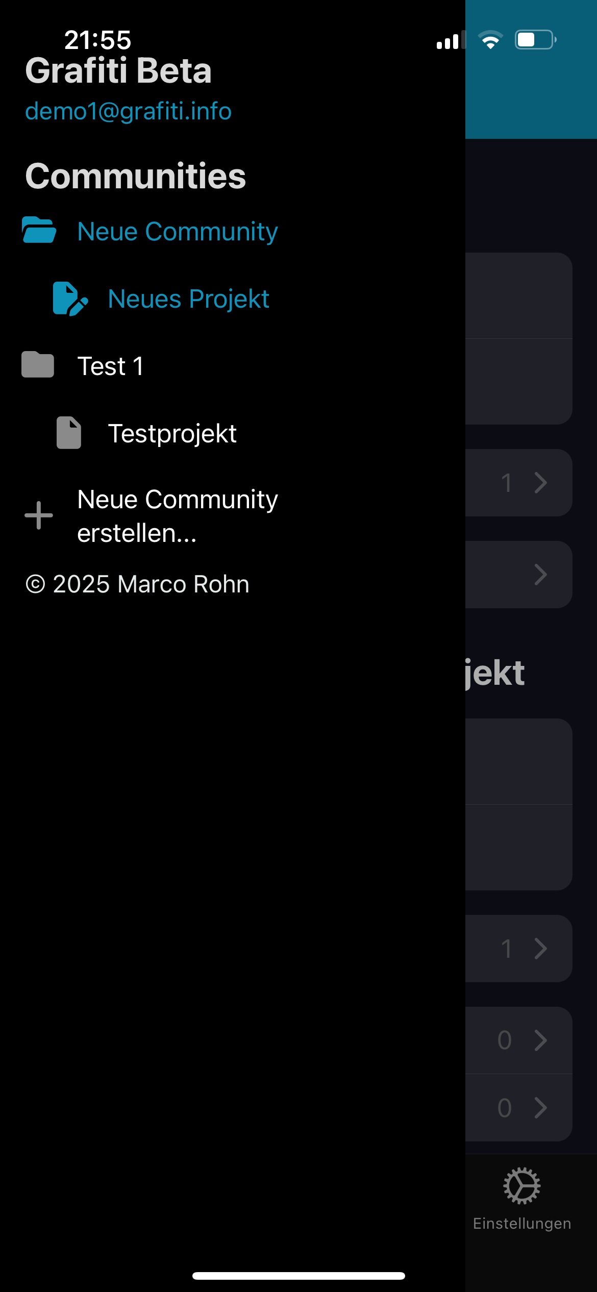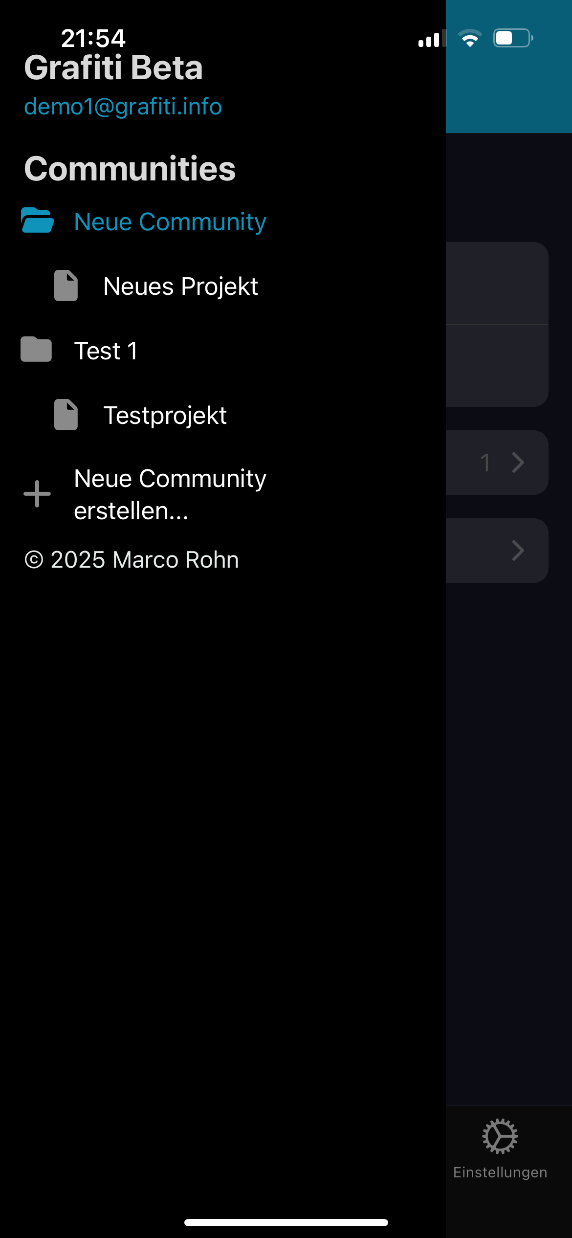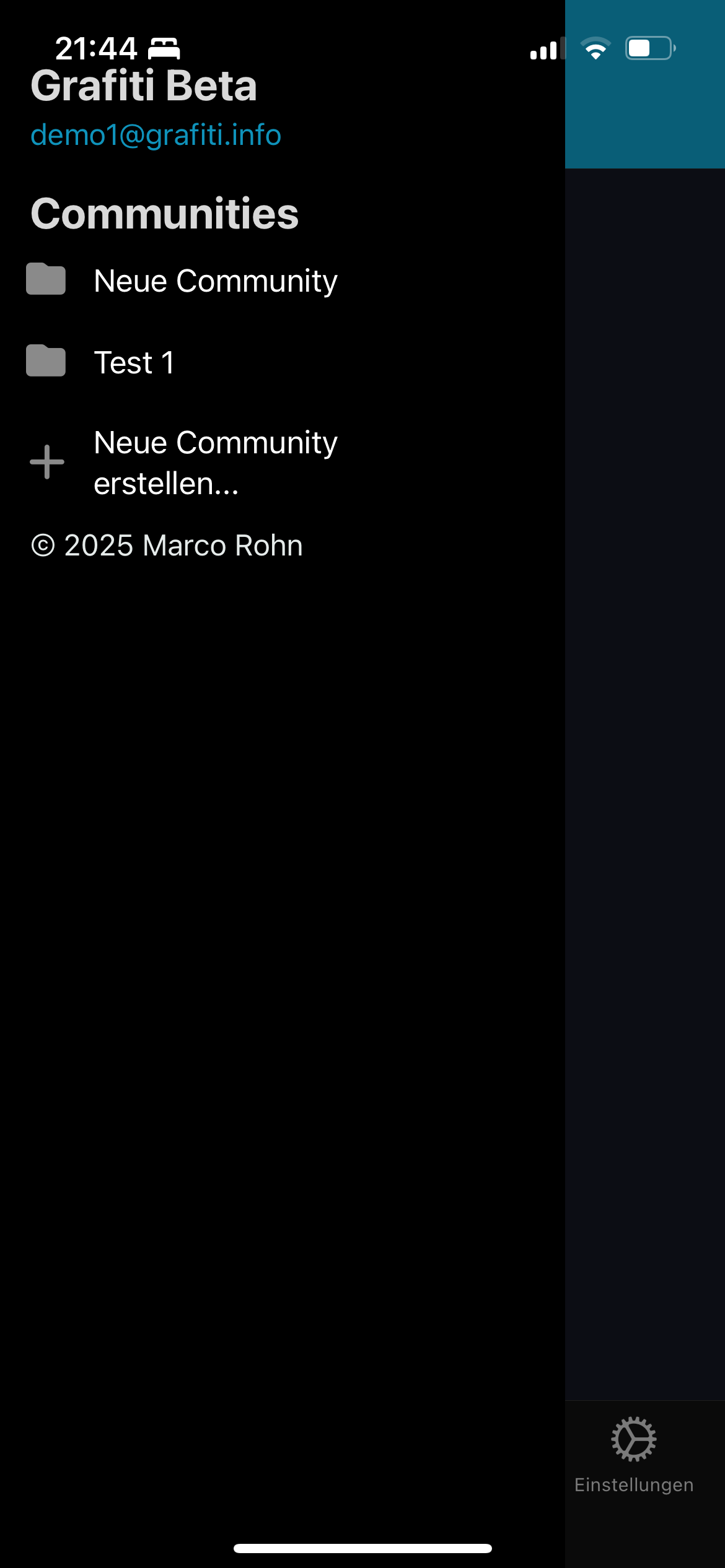 Tippen Sie auf den Haken bzw. das Kreuz, je nachdem, ob Sie die Einladung annehmen oder ablehnen möchten. Sobald Sie eine Einladung angenommen haben, sollte die entsprechende Community im Seitenmenü erscheinen. Ggfs. kann es aber auch notwendig sein, die App zu schließen und beenden und neu zu starten.