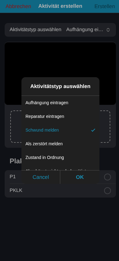 Tippen Sie auf den Eintrag “Aktivität eintragen”. Die aus dem Abschnitt Neues Plakat fotografieren bekannte Kameraansicht öffnet sich.